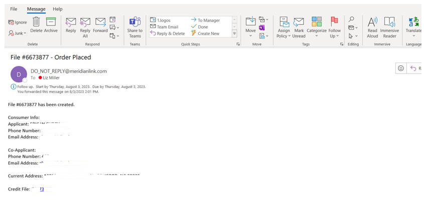 Once the client completes the steps, you will receive an email with a reference number. (see image below)